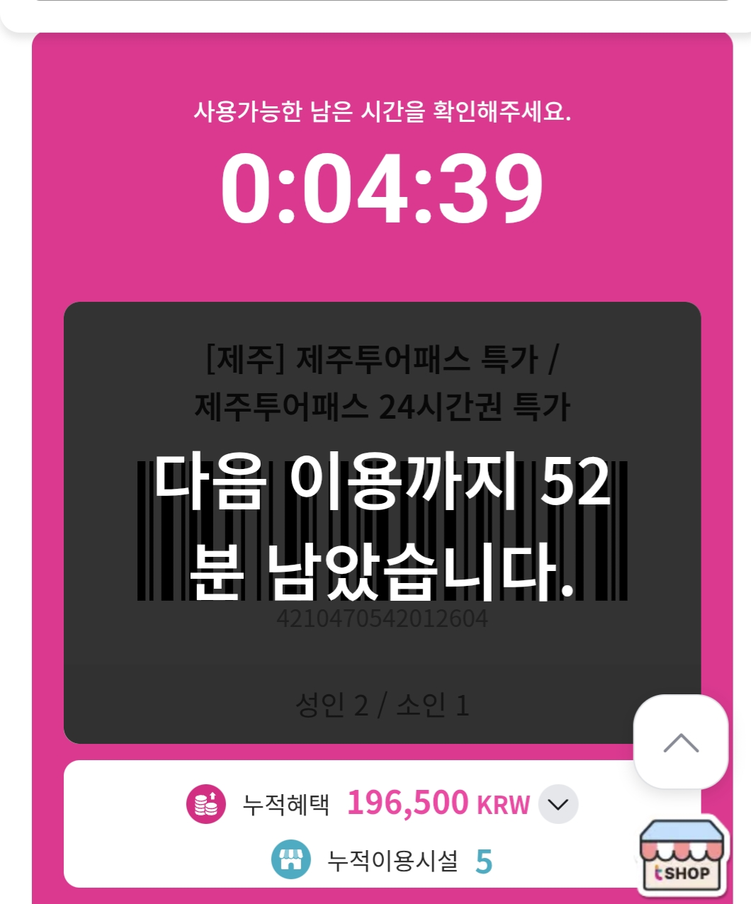 참고로 투어패스 이용권은 시작 시점을 기준으로 24시간입니다.