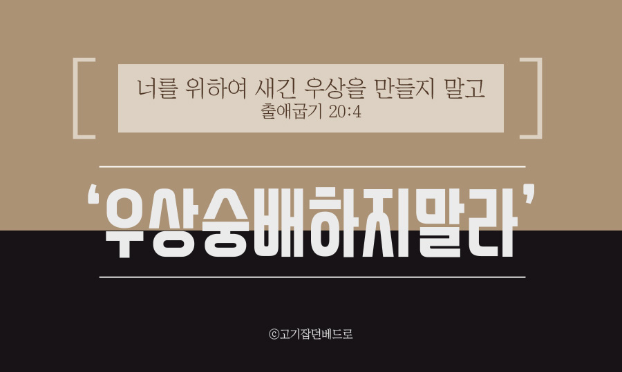 예레미야 10장 3~5절 열방의 규례는 헛된 것이라 ①그 위하는 것은 삼림에서 벤 나무요 공장의 손이 도끼로 만든 것이라 그들이 은과 금으로 그것에 꾸미고 못과 장도리로 그것을 든든히 하여 요동치 않게 하나니 그것이 ②갈린 기둥 같아서 말도 못하며 걸어다니지도 못하므로 사람에게 메임을 입느니라 ③그것이 화를 주거나 복을 주지 못하나니 너희는 두려워 말라 하셨느니라.