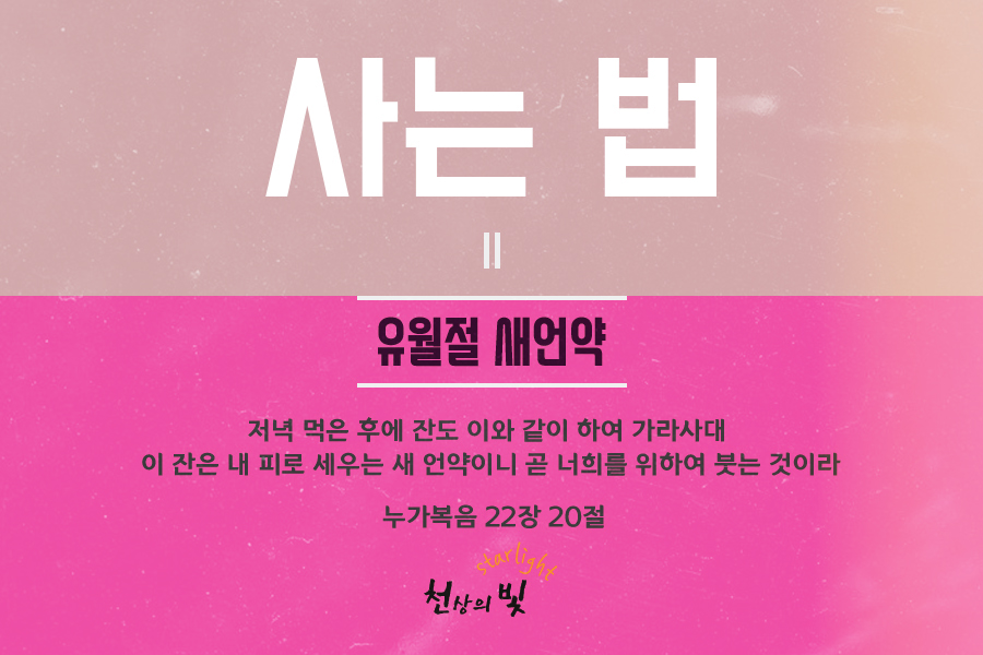 누가복음 22장 20절 (유월절)이 잔은 내 피로 세우는 새언약이니 곧 너희를 위하여 붓는 것이라